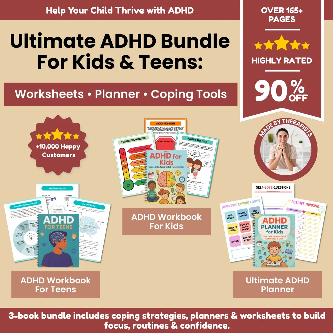 ADHD Bundle for Kids & Teens - Worksheets, Planner & Coping Skills
