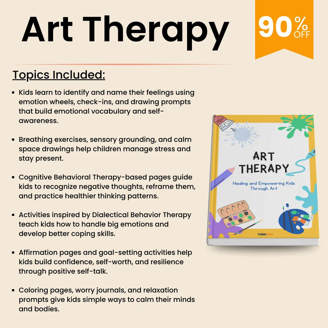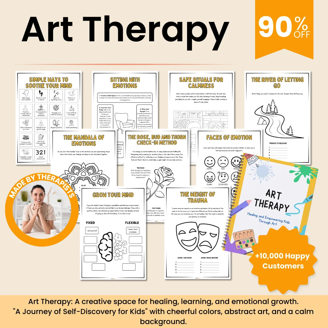This +125 worksheets Art Therapy Workbook is a powerful resource designed for children and teens, combining art-based activities with proven therapeutic tools like CBT, mindfulness, and social-emotional learning. Whether used at home, in therapy sessions, or in the classroom, it offers a safe and engaging space for self-expression, emotional regulation, and healing.