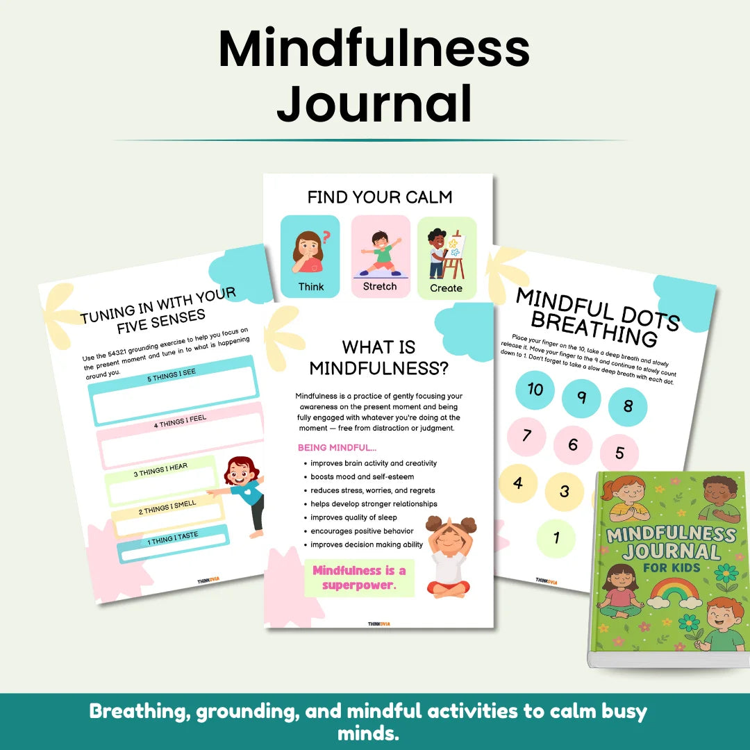 🧘 Mindfulness Journal – Breathing, grounding, and mindful activities to calm busy minds.