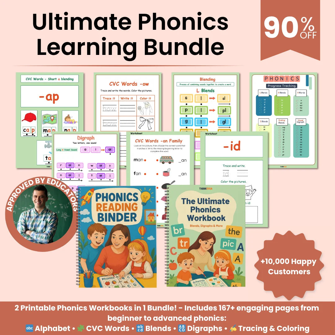 Help your child fall in love with reading using this engaging, skill-building phonics bundle! This 2-in-1 workbook set is designed to take learners from the alphabet stage to advanced phonics mastery through hands-on, printable activities.